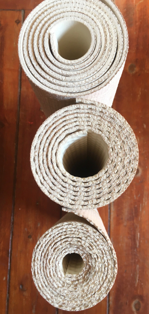 These mats have the same construct as the 4mm mats; they are just thinner. A pure rubber underside to grip the floor and the fabric/rubber mix on top. Hessian fabric gives a durable, tactile and pleasantly natural surface to work on whilst the rubber provides the sought after GRIP. The eco yoga jute mat combines a cloth surface and sticky mat in one and is ideal for all yoginis and yogis.
